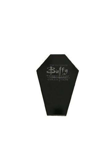 The Ultimate Buffy Collection - This unique and highly limited edition collection features a black lacquered handmade wooden coffin with a plush velvet interior that cradles the cards inside. Includes all 612 cards from Buffy the Vampire Slayer seasons 1-7 reprinted on card stock, with each card foil stamped to enhance its collectability for generations to come. Coffin is numbered 58/100 in marker. Also included is a new collection of 7 etched trading cards printed on rainbow holographic foilboard, celebrating 7 seasons of Buffy the Vampire Slayer. No outer packaging included. Cards are sealed.