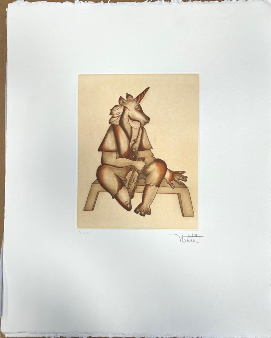 A sepia toned etching of her famous bronze sculpture. Image size 10.75x8.25", on paper 28x23" pencil- signed AP