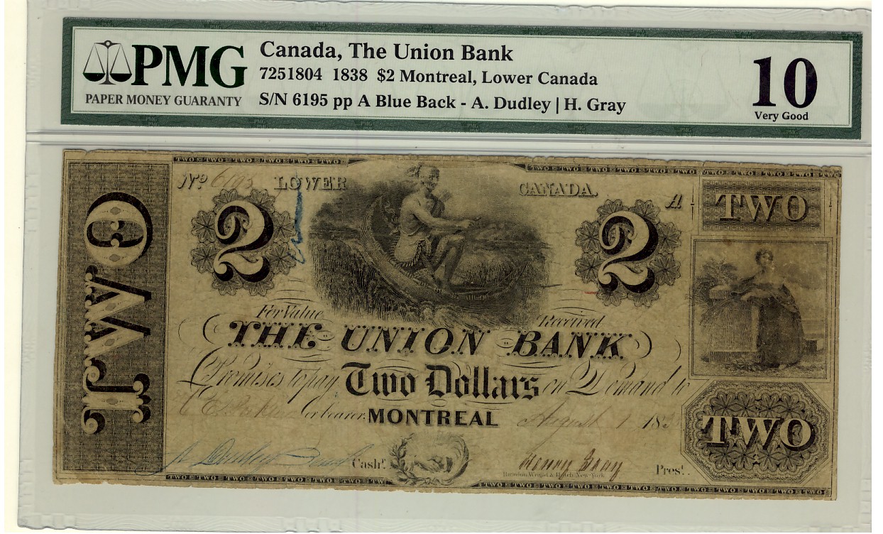 The Union Bank 1838 $2 #6195 CH-725-18-04 PMG VG10