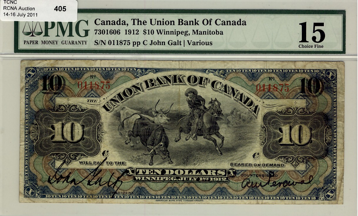 The Union Bank of Canada 1912 $10 011875 CH-730-16-06 PMG F15