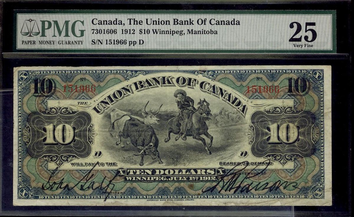 The Union Bank of Canada 1912 $10 #151966 CH-730-16-08 PMG VF25.