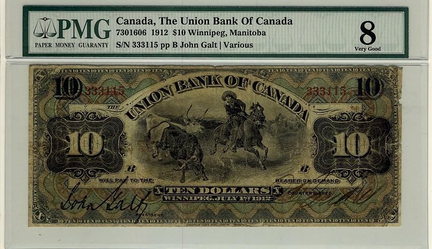 The Union Bank of Canada, 1912 $10 #333115, CH-730-16-06, PMG VG8