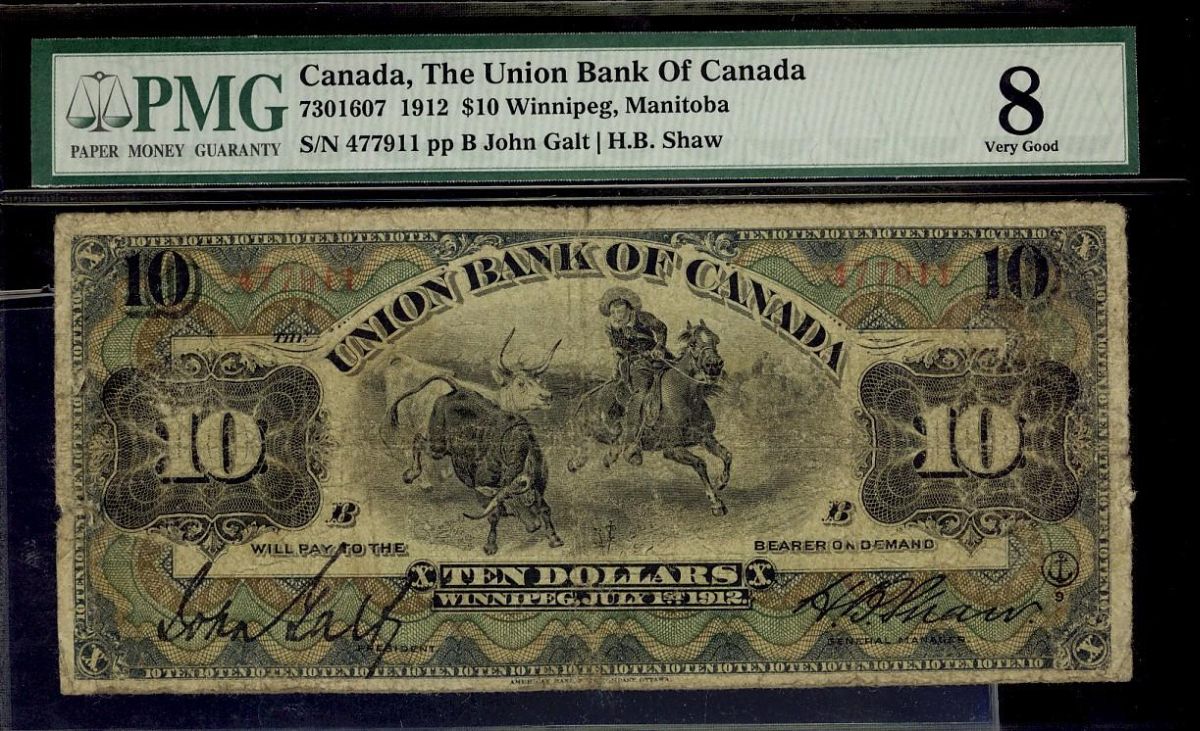 The Union Bank of Canada 1912 $10 #477911 CH-730-16-10 PMG VG8.