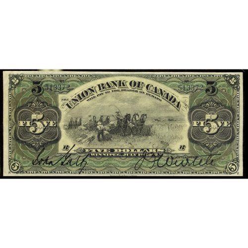 The Union Bank of Canada 1912 $5 #513372 CH-730-16-04 VF+, rare grade