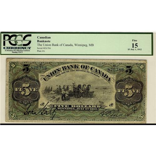 The Union Bank of Canada 1912 $5 #826786 CH-730-16-06 PMG F15. A popular issue.