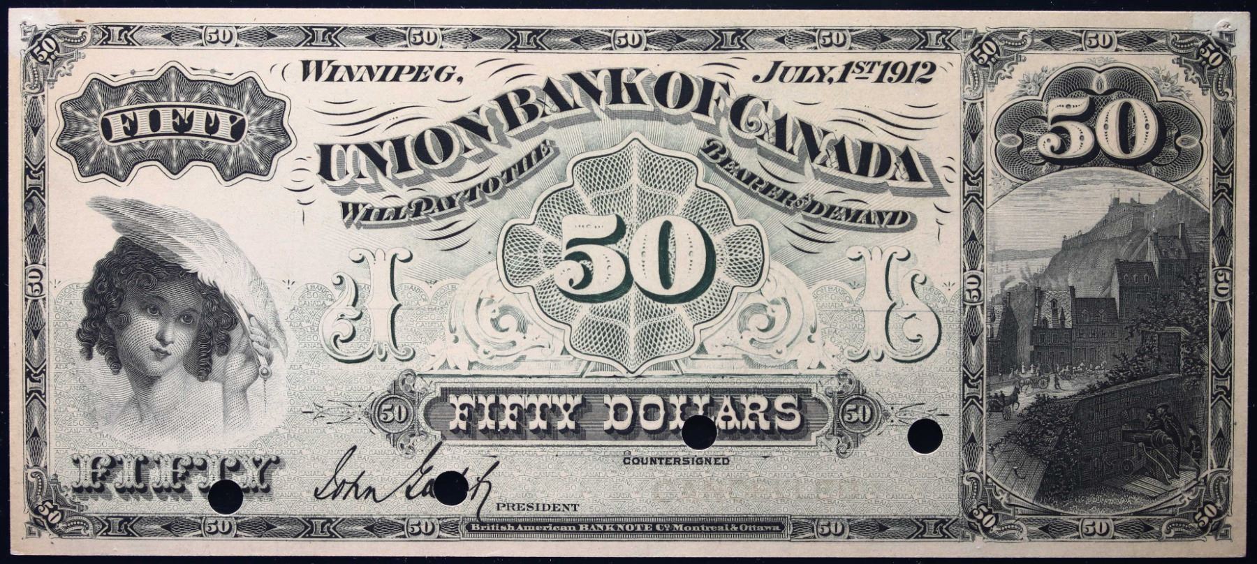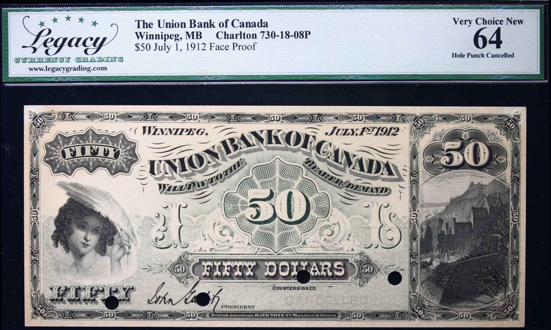 The Union Bank of Canada 1912 $50 CH-730-18-08P 'FACE PROOF-WINNIPEG' # LCG Choice Uncirculated-64