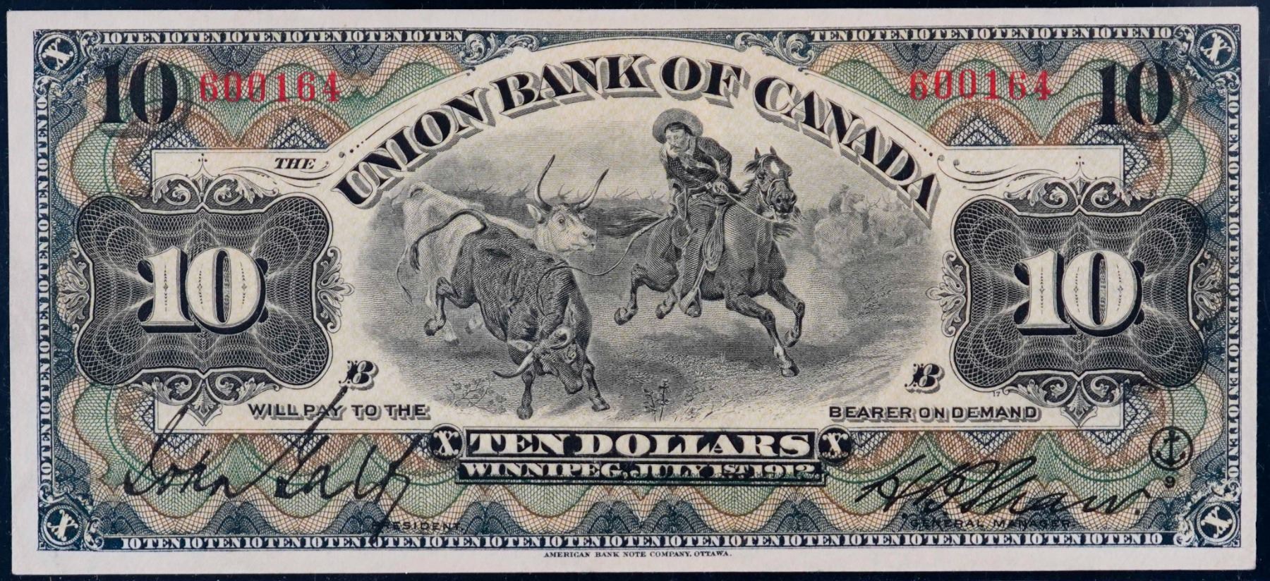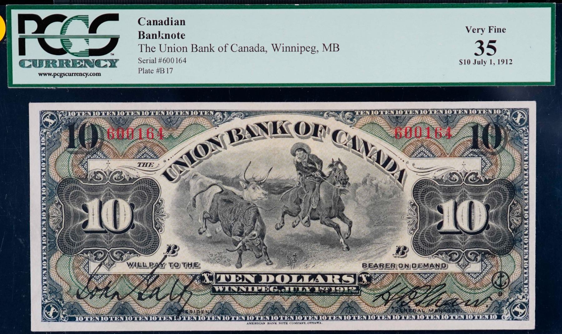 The Union Bank of Canada - Winnipeg 10 Dollars July 1st, 1912 CH# 730-16-10 Galt – Shaw signatures Serial No. removed # 600164 PCGS Choice Very Fine-35