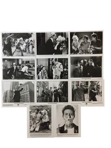 Collection of 4 press kits with black and white publicity stills included, sized mainly 8x10's from Columbia Pictures and Paramount Pictures (1980's-90's). Vice Versa From Columbia Pictures (1988) starring Judge Reinhold as Marshall, Fred Savage as Marshall, and Corinne Bohrer as Sam, includes 4 publicity stills. "Yor, The Hunter from the Future", from Columbia Pictures (1983), starring Reb Brown as Yor, Corinne Clery as Kala, and Luciano Pigozzi as Pag, 6 stills included. "Vibes" From Columbia Pictures (1988) starring Cyndi Lauper as Sylvia Pickel, Jeff Goldblum as Nick Deezy, and Peter Faulk as Harry, includes 4 stills. "The Untouchables" from Paramount Pictures (1987), starring Kevin Costner as Eliot Ness, Charles Martin Smith as Oscar Wallace, and Andy Garcia as George Stone, includes 4 stills.