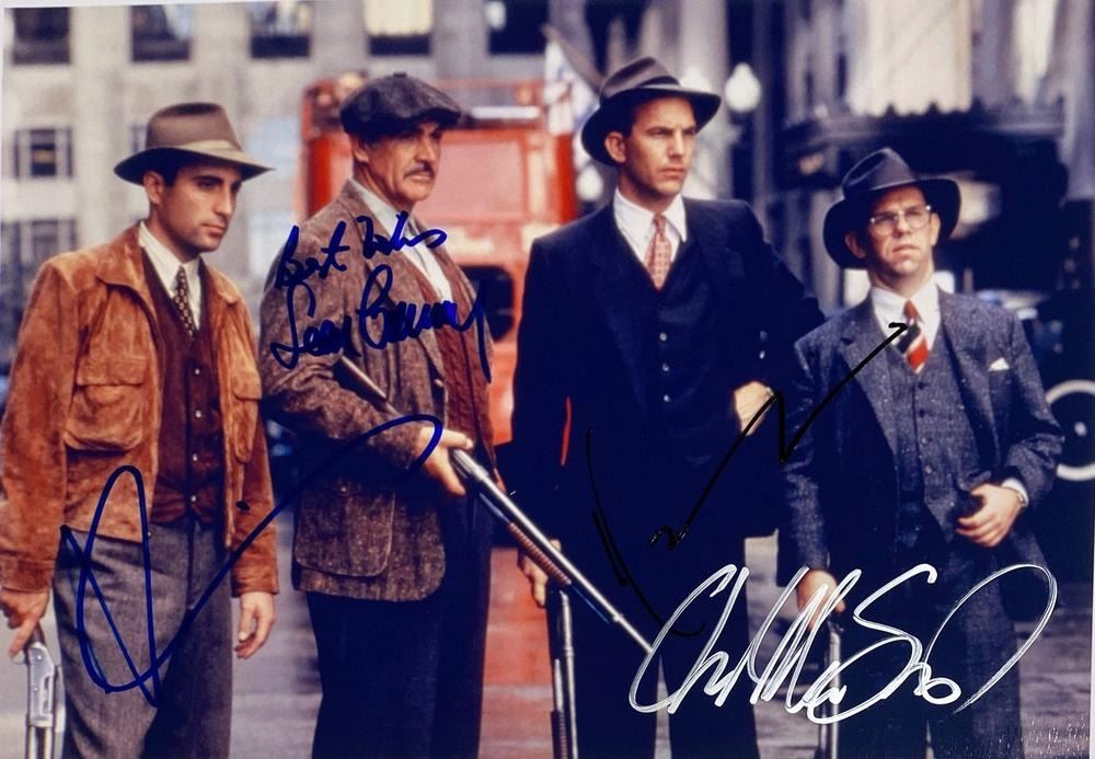 The Untouchables cast facsimile signed movie photo autographed by Andy Garcia, Sean Connery, Kevin Costner and Charles Martin Smith. 8x10 inches. This item is a reprint of an original autograph