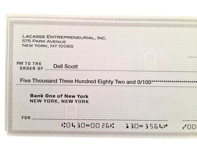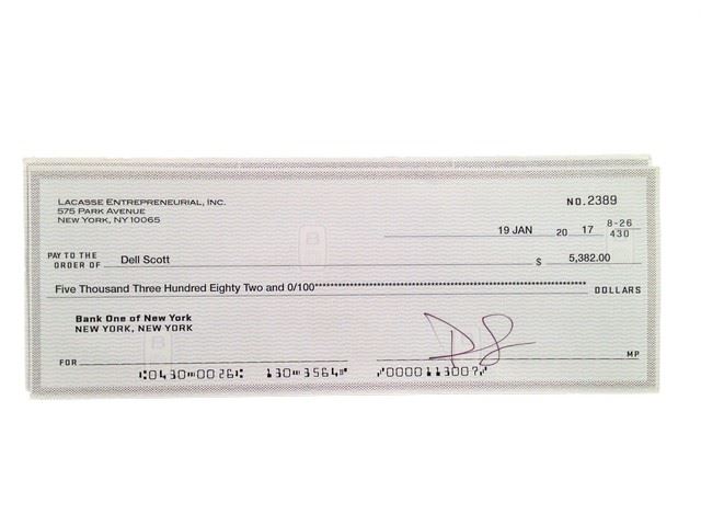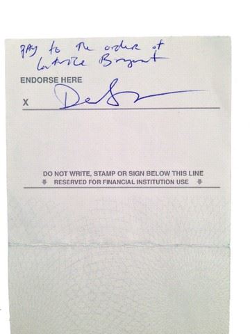 Dell (Kevin Hart) screen used, hero, $5,382.00 paycheck, signed on the back to Latrice (Aja Naomi King) his wife. Check #2389. Scene 56.(4x9)