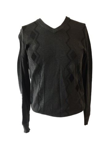 Dell (Kevin Hart) screen worn, hero,, charcoal black and grey "Prince & Fox" jackect (L), long sleeve v-neck sweater with argyle on the front. Wardrobe tag included, worn in scenes 75, 76, 76.