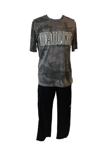 Dell (Kevin Hart) screen worn, hero,, charcoal grey "Champion" shirt with Bronx print on the chest (M), black "Nike" pants basketball style (M). Worn in scene 79. Wardrobe tag included.