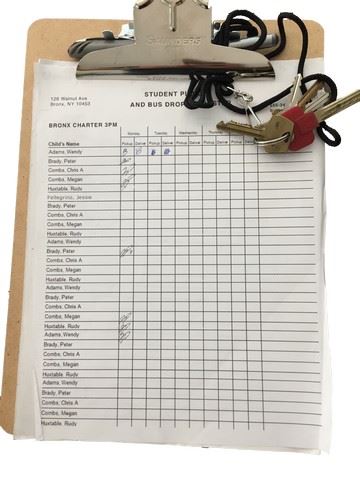 Dell (Kevin Hart) screen used, "Bronx Charter School" pickup roster and walkie's. Used in scene 23.