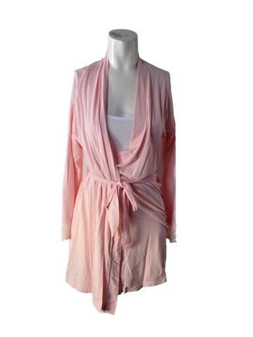 Jenny (Genevieve Angelson) screen worn, hero, pale pink "Cosabella" robe with lace at the sleeves and hem, and a white thin "Hanro" tank. Wardrobe tag included. Worn in scene 44G.