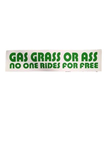 Phillip (Bryan Cranston) screen used, "Gas Grass or Ass no one Rides for Free" bumper sticker.(9x2)
