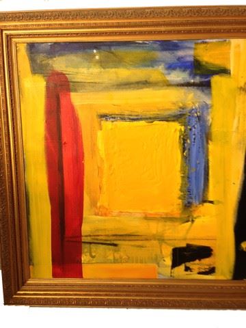 Phillip (Bryan Cranston) screen used, hero, "Messer" oil painting with bright yellow, orange and black, and some blue color. Gold frame with intricate design. This was one of the four paintings Phillip collected in the film that reminded him of his late wife. (43x43)