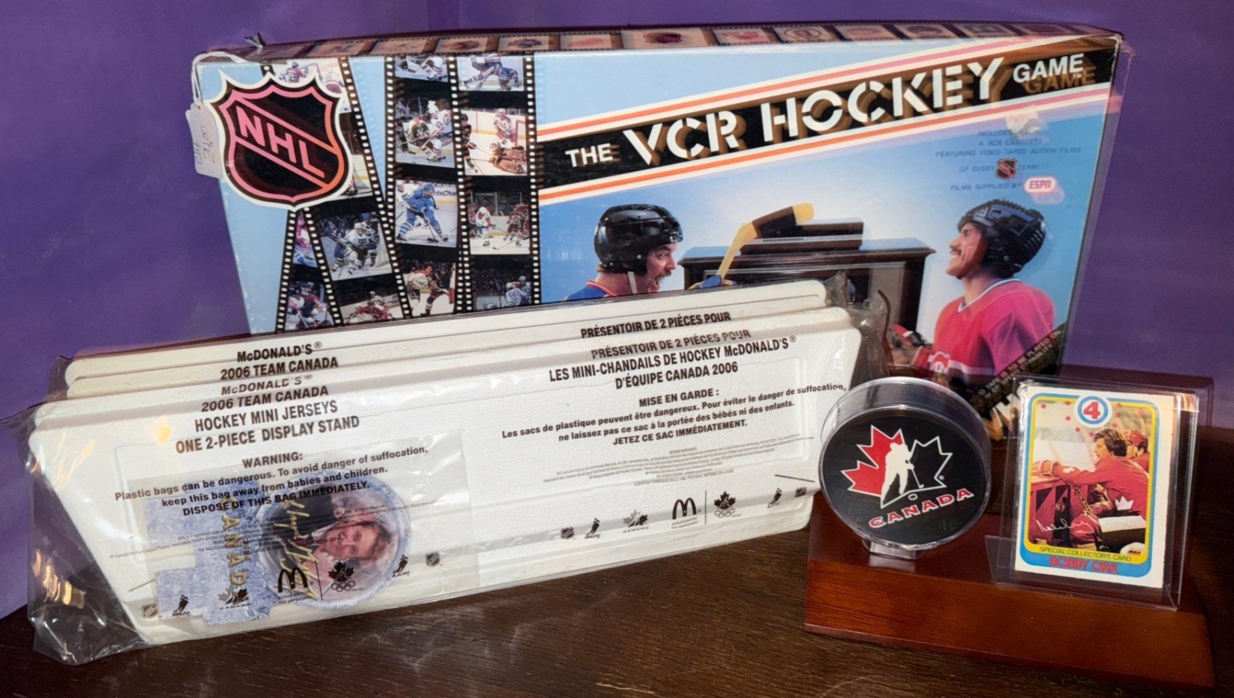 The VCR Hockey Game, McDonalds Mini Jersey Stand & Collectible Puck & Card Stand