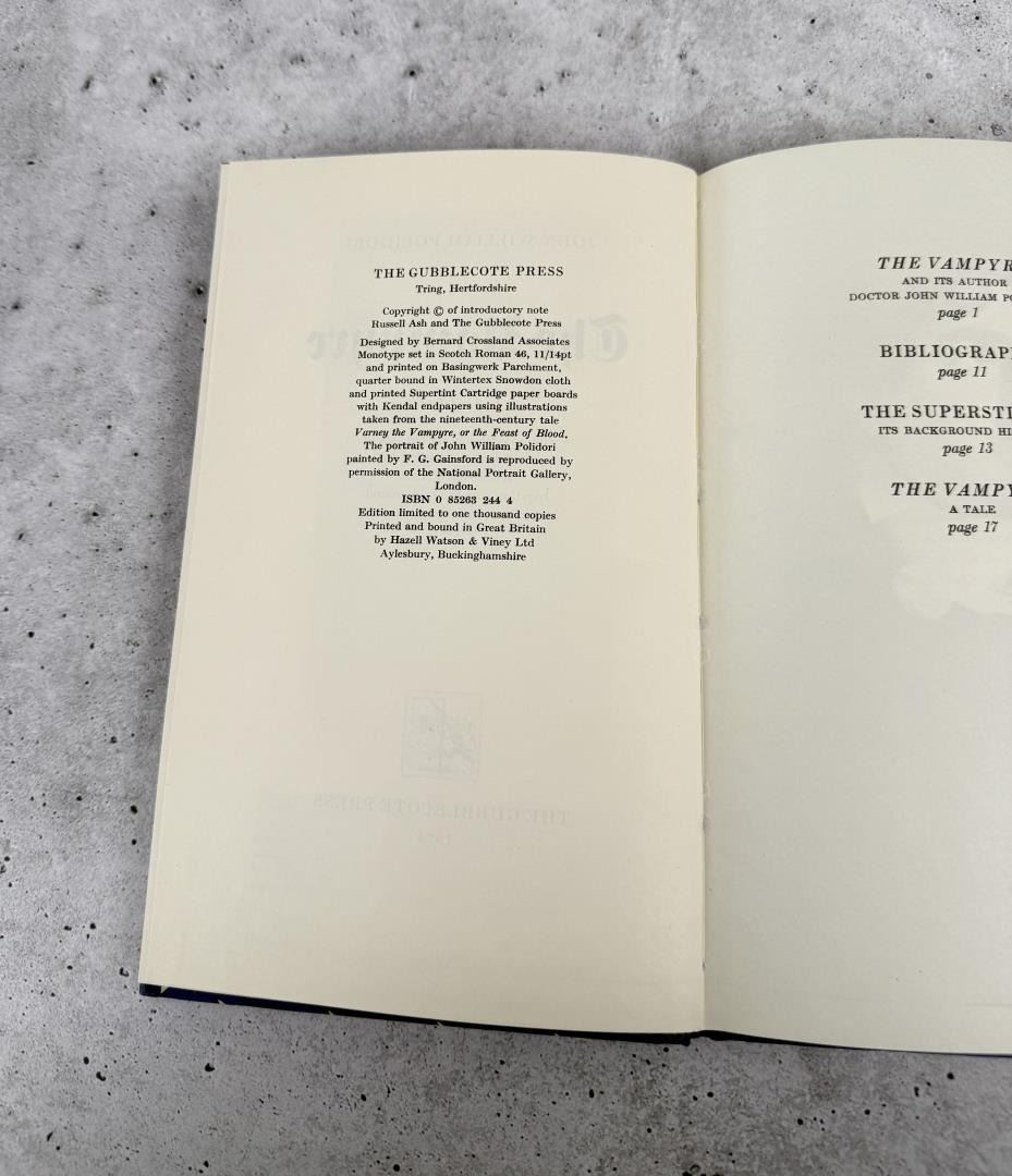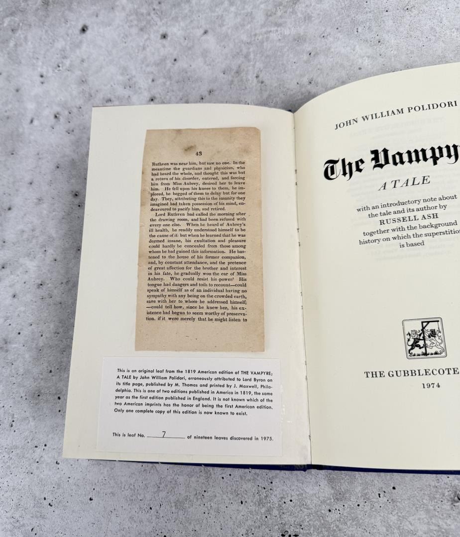 A Tale by John William Polidori. Contains an original Leaf from the 1819 American Edition. Gubblecote Press 1974