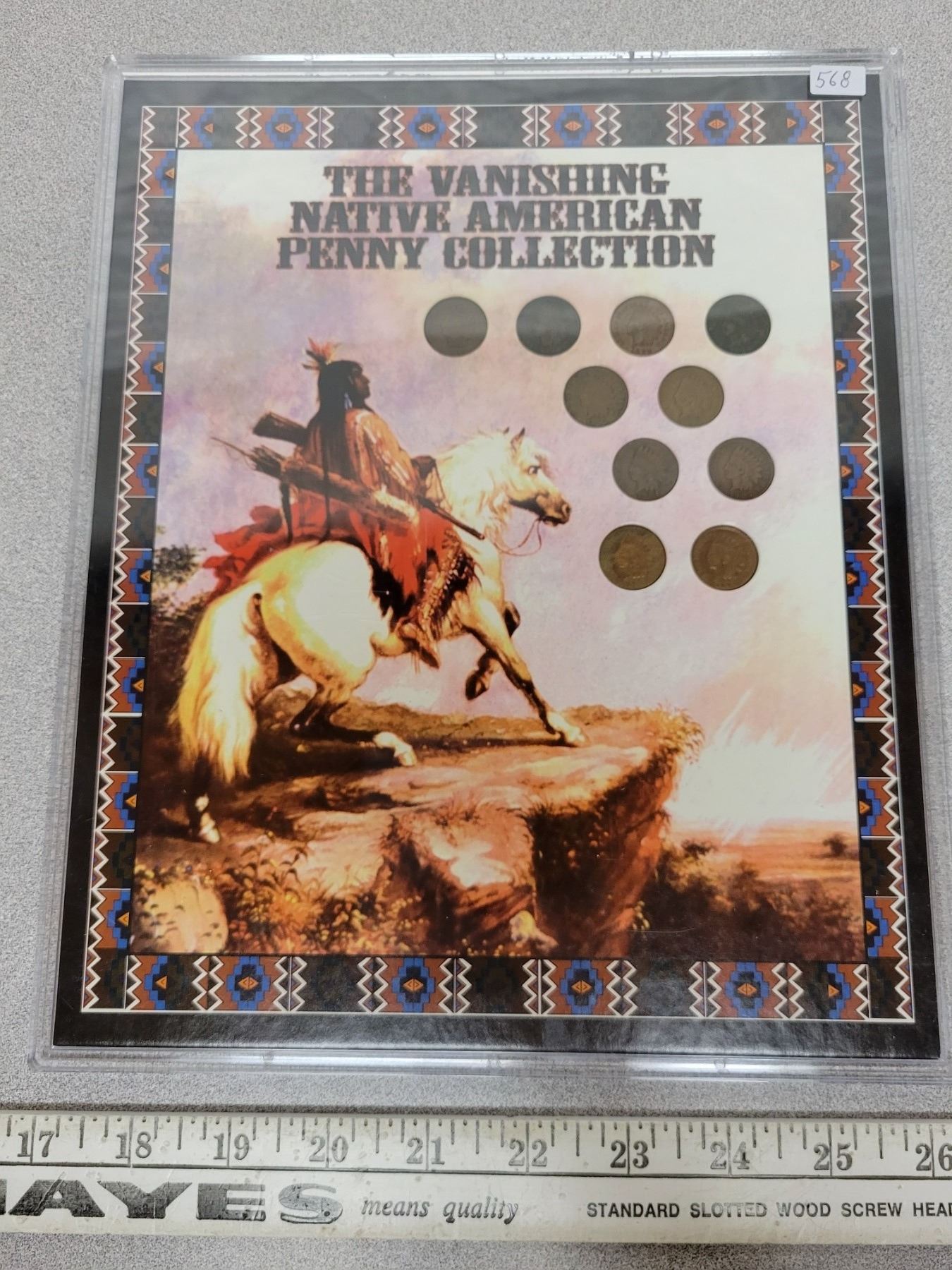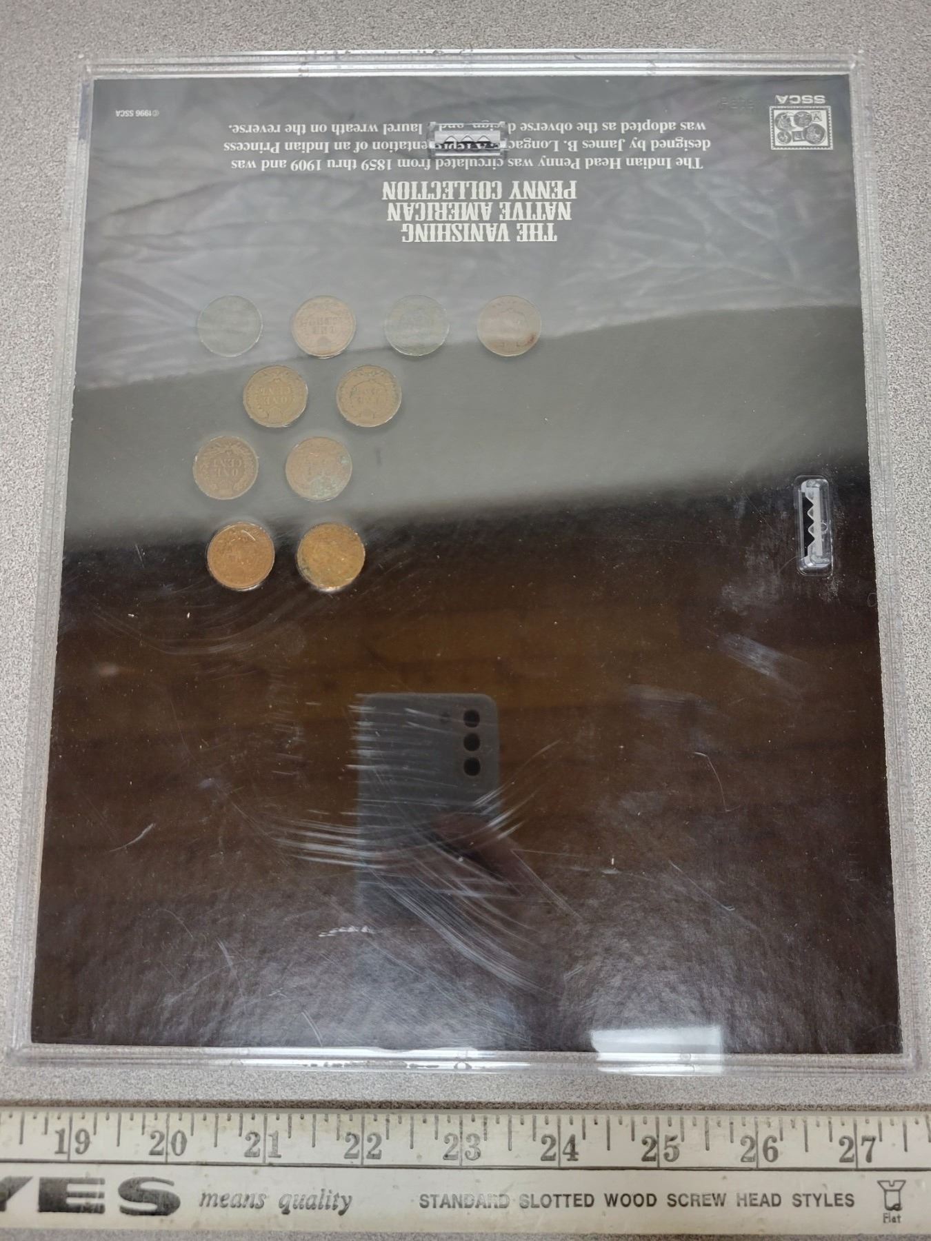The Vanishing Native American Penny Collection. Includes 10 different Indian Head Cents including 1888, 1898, 1899, 1900, 1901, 1903, 1904, 1905, 1906 & 1907. Housed in a hard plastic holder.