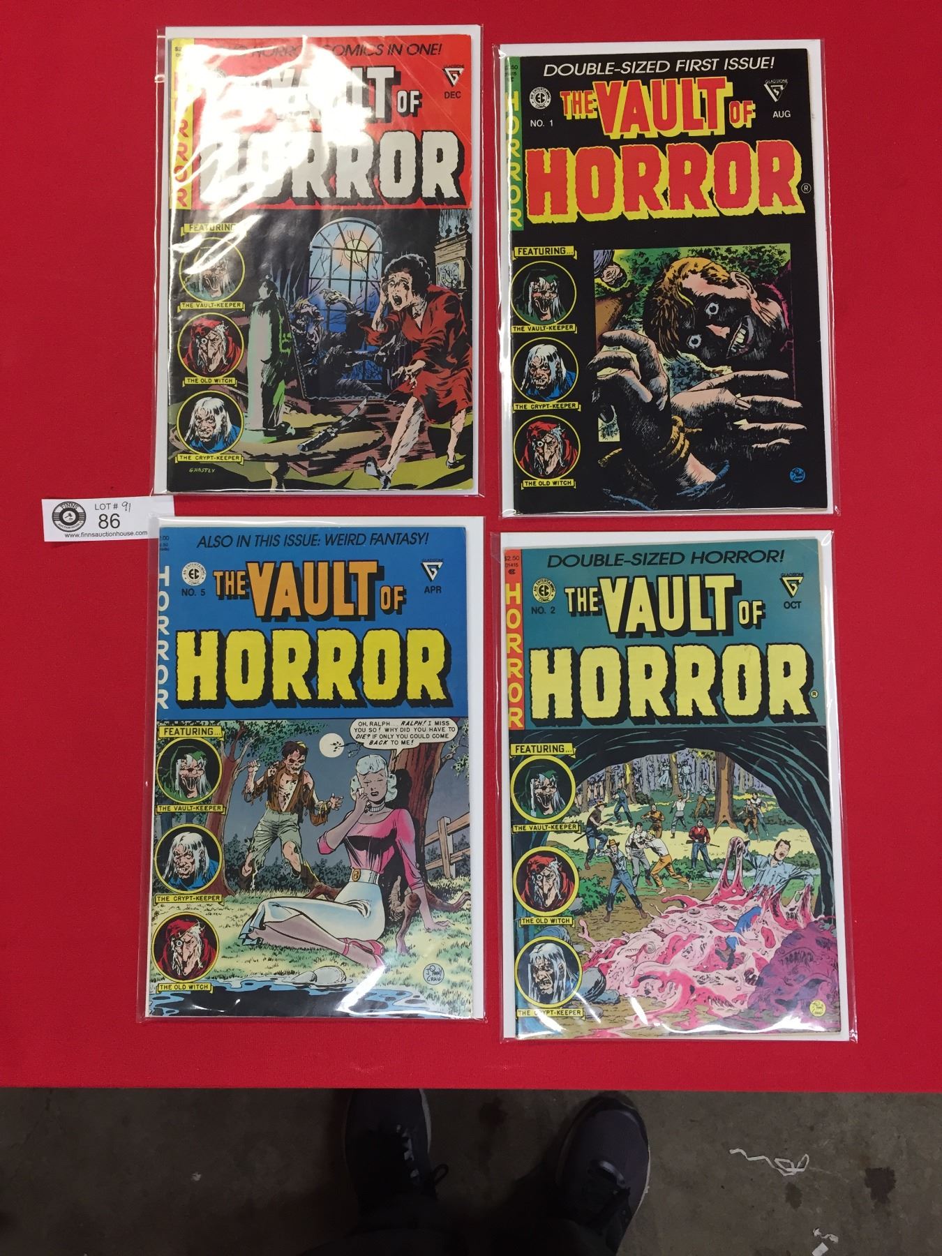 The Vault of Horror Comics #1,2,3,5 All in Comic Bags on White Cardboard