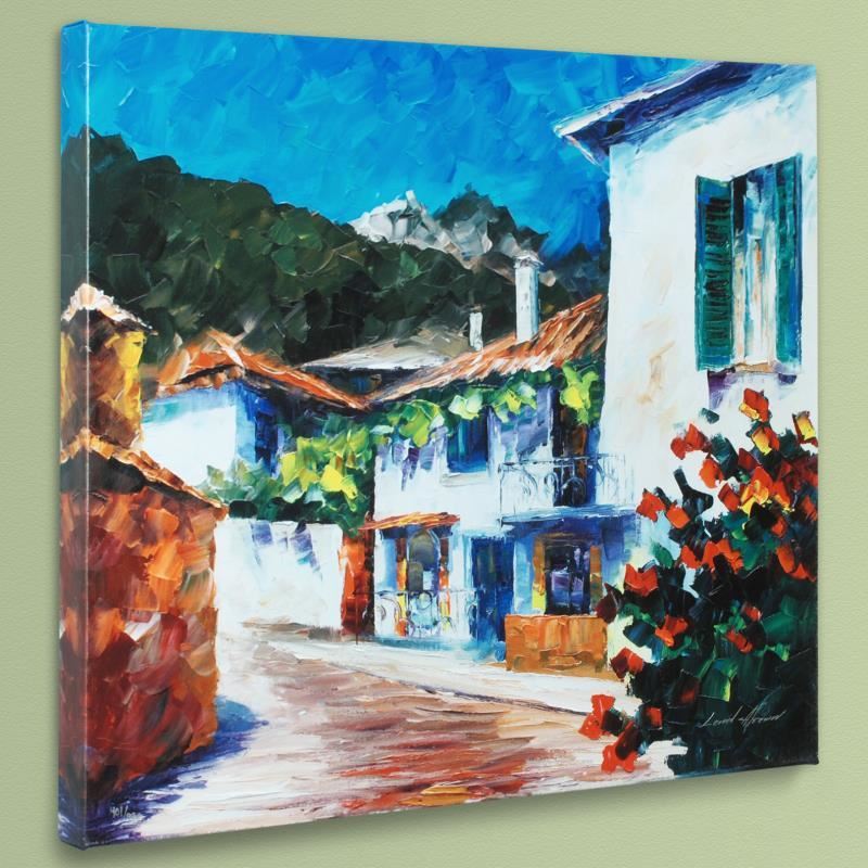 Leonid Afremov's (1955-2019) masterful use of color and texture make his paintings unique collectibles that are sure to brighten any wall. "The Villa" is a limited edition giclee on canvas. The piece is numbered and bears the artist's authorized signature. This piece comes gallery wrapped. Includes Letter of Authenticity. Measures approx. 22" x 20" (image). This item requires special handling and may have a longer than usual turnaround.