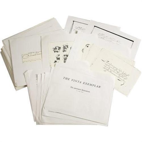 <B>The Vinta Exemplar: A Handwritten Collection of Twelve Bifolia Leaves and One Single Leaf Mentioning Belisario Vinta, Friend to the Medici Family,</B></I> each leaf measures approximately 8" x 5.25". A stitched gathering of swan-watermarked paper with recto writing and lettering in brown ink, this collection represents one of the only known teaching exemplars of chancery cursive in the hand of an Italian handwriting master. The leaves have been written in corsiva graziosa, the calligraphic basis of the Italian Hand script, the most advanced of all Western handwriting. The handwriting on the various leaves includes a dedication to Belisario Vinta, a message congratulating a prince of the Church, several address of Italian noblemen, an example of velocissima script, a letter of condolence upon the death of an Italian named Francesco Grimaldo, and four leaves of the alphabet. The leaves are accompanied by a folder of research about the writing contained herein, and is a fascinating read for those interested in the history of the written word. All leaves are in fine condition, with light toning around the edges, and are housed in a custom cloth solander box with a gilt-lettered title plate on the front.<BR><BR><b>Shipping:</b> Books & Catalogs (<a target="_blank" href="http://www.heritageauctions.com/common/shipping.php">view shipping information</a>)