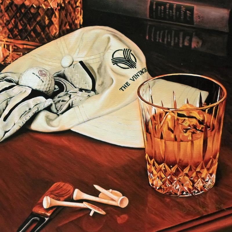 "The Vintage" is a numbered limited edition giclee on canvas by Nobu Hairara. It comes bearing the artist's authorized signature and with a Certificate of Authenticity. Measures approximately 11.25"x11.25" (image).