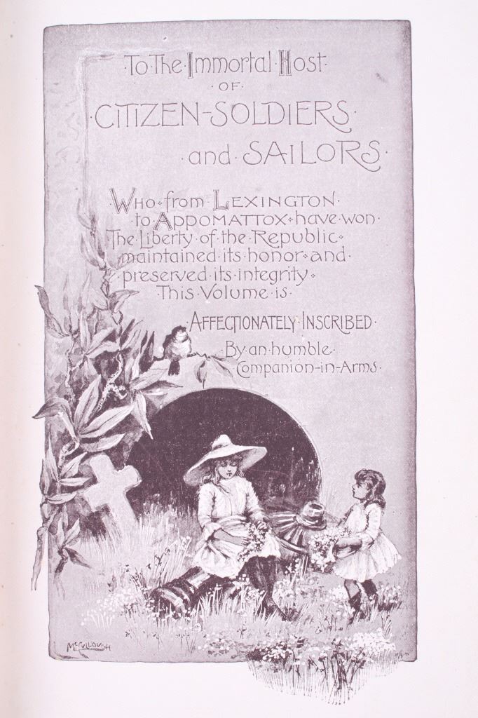 For your consideration is a copy of "The Volunteer Soldier of America" by John A. Logan, published by R.S. Peale & Company in 1887. John Alexander Logan (February 9, 1826 – December 26, 1886) was an American soldier and political leader. He served in the Mexican–American War and was a general in the Union Army in the American Civil War. He served the state of Illinois as a State Senator, a Congressman, and a U.S. Senator and was an unsuccessful candidate for Vice President of the United States with James G. Blaine in the election of 1884. This work pays tribute to the sacrifice of citizens when they become soldiers. This copy includes a colored illustration, a portrait of John A. Logan, as well as many other illustrations throughout. It accounts many of Logan's own memories, as well as his advocacy for military education. This book is in good, overall condition, with some wear showing on the bind. The book measures 9 1/2" by 6 3/4".