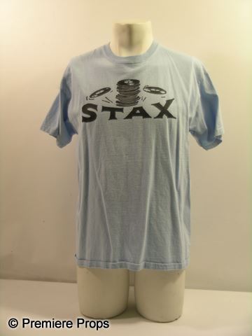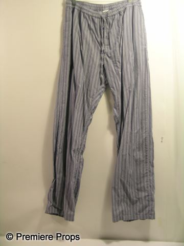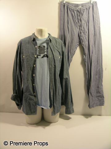Leo (Channing Tatum) screen worn, hero, blue chambray long sleeve button front 'J. Crew' shirt, (size L) light blue with black 'Stax' on the front "Gildan" t-shirt, (size L) and two tone blue with ties at the waist 'H&M' PJ pants. (size L)