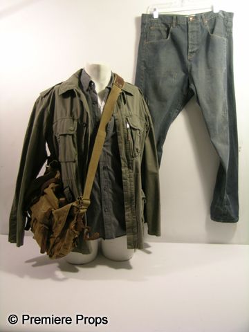 The Vow - Leo (Channing Tatum) screen worn, hero, khaki four pocket long sleeve 'Canterbury' jacket, (size L) grey with stripes long sleeve 'BDG' shirt, (size L) white long sleeve with buttons at the neck 'Crossley' shirt, camel canvas with brown leather straps 'Belstaff' bag, and faded blue was with rips 'Skinny Carrot' jeans. Very key wardrobe ensemble and seen throughout numerous scenes (size 36)