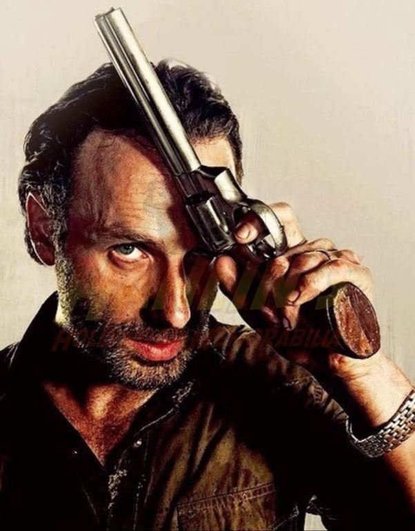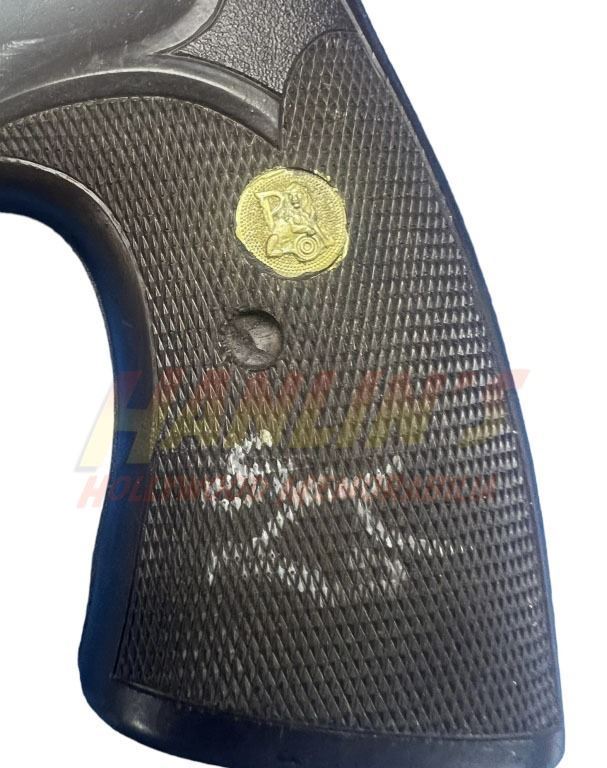 Original stunt Colt Python is a .357 Magnum caliber revolver used by "Rick Grimes", played by Andrew Lincoln in the post-apocalyptic horror drama television series 'The Walking Dead' (2010-2022), featuring a large ensemble cast as survivors of a zombie apocalypse trying to stay alive under near-constant threat of attacks from zombies.