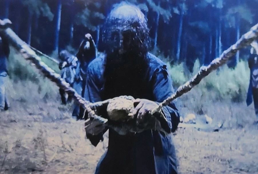 In the opening scenes of The Walking Dead Season 10, episode 11 Beta is seen hacking into a tree to release the sap under the bark and collecting that sap in a container that is actually a walker bladder. As the shot widens viewers can see that Beta and some of the other Whisperers are in a pine forest and a large number of trees have containers nailed to them and are collecting sap.