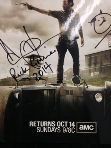 The Walking Dead (2010-present)- Based on the wildly popular comic book series comes this "Walking Dead" poster autographed by Rick Grimes who plays Andrew Lincoln in the show. Poster reads: "Rick Grimes 2014" with a devil smiley face.(12x8)