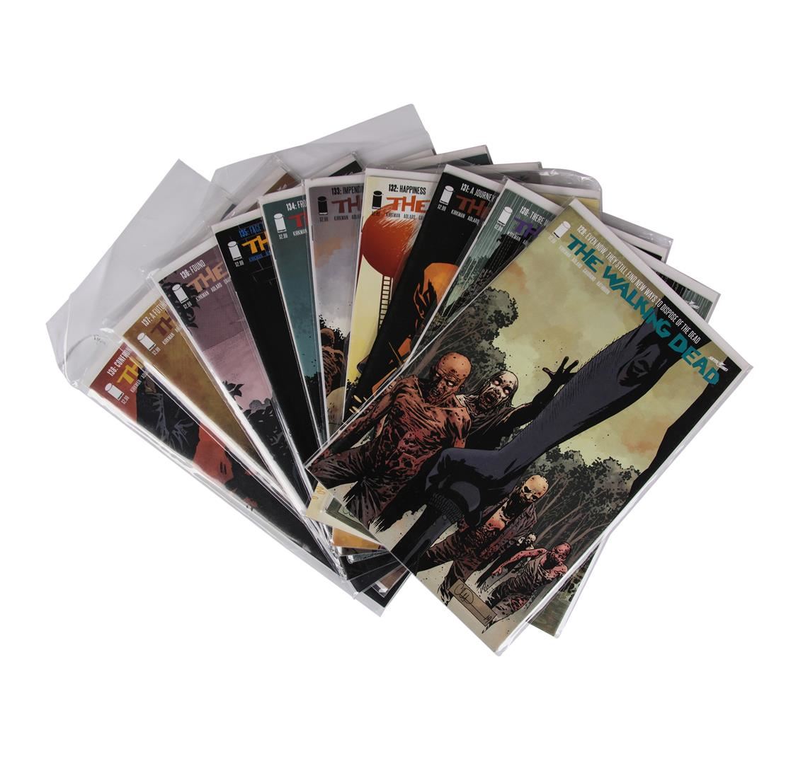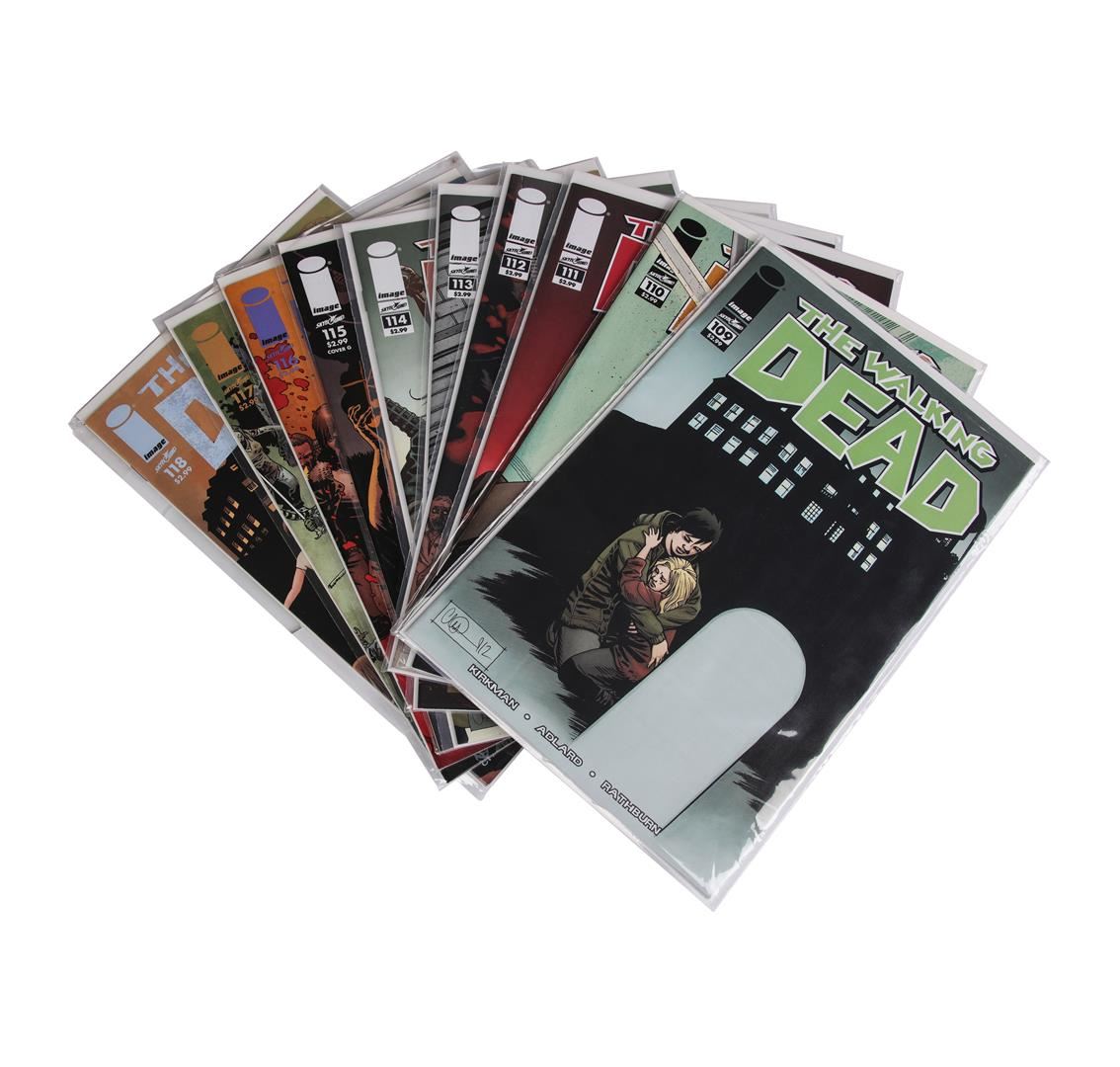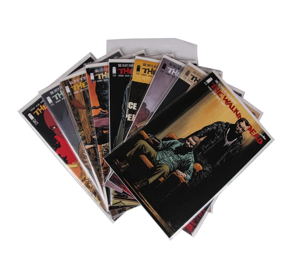 One set of The Walking Dead comic books containing issues #109 through #157. The comic book series was created by writer Robert Kirkman and artist Tony Moore.