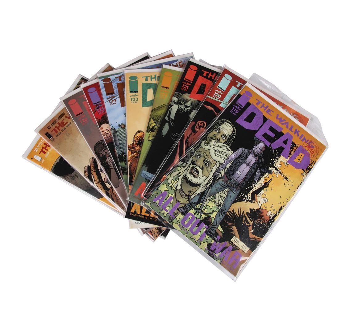 One set of The Walking Dead comic books containing issues #109 through #157. The comic book series was created by writer Robert Kirkman and artist Tony Moore.