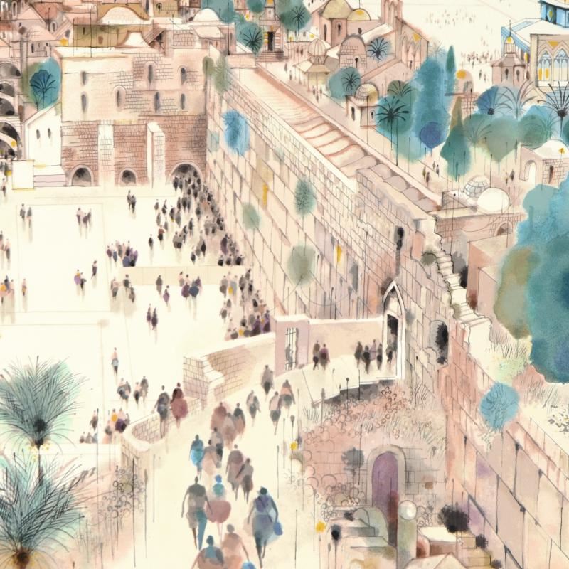 "The Wall, Right View" a limited edition serigraph on paper by Shmuel Katz, numbered and hand signed by the artist! Measures approx. 26.5" x 33.5 (with border), 23.5 x 28.5" (image).