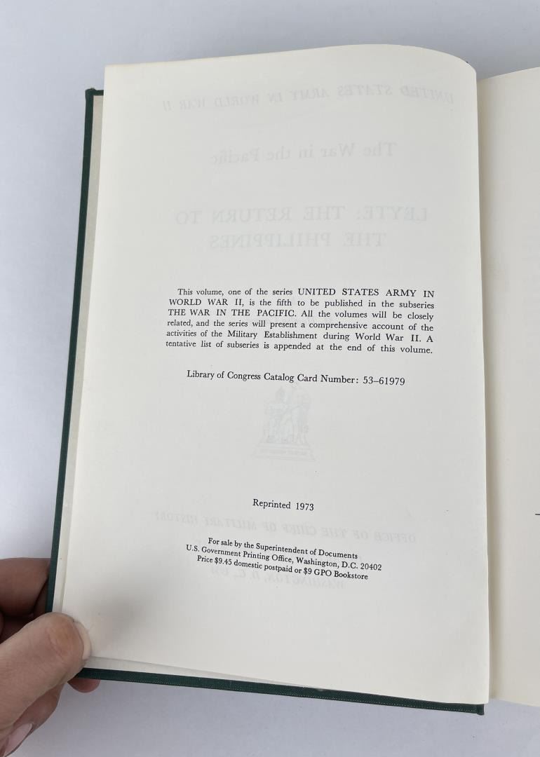 US Army World War II Leyte: The Return to the Philippines dated 1954