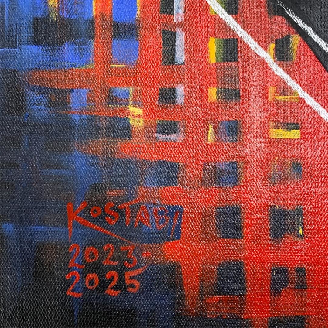 "The Way Out" is an original oil painting on canvas by Mark Kostabi, hand signed by the artist. This piece comes custom framed. Includes Certificate of Authenticity. Measures approx. 29.5" x 29.5" (frame), 19.5" x 19.5" (image).