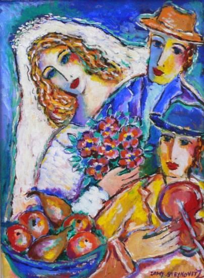 Steynovitz was born in Legnica, Poland and immigrated to Israel in 1957.[1] He aspired to become a painter from childhood, and had prior to leaving Poland begun his artistic activity. He immigrated to Israel in 1957. Steynovitz studied at both the Art School in Tel-Aviv and at the Royal Academy of Arts in London.Upon completing his studies he began his artistic activity in earnest; he established his place in the art world after exhibiting his work in one-man exhibitions and art fairs around the world. Steynovitz's images are reflections of both his Jewish and Eastern European heritage. His work suggests the style of Marc Chagall combined with the use of color of the present generation of artists.Zamy's art displays chromatic and thematic richness. His choice of subjects was strongly influenced by Jewish tradition and folklore, displaying general themes: Paris, still lifes, flowers, angels, circuses and landscapes. In the early stages of his work he used rich pastels, ink, watercolors and light brush strokes. However during his travels in South America during the 1980s his work was influenced by the new surroundings and enhanced by the local light and colours. His art gained chromatic power; the palette became richer in tones, the fixtures thicker, the backgrounds darker and more colorful. Through these developments Steynovitz's thematic elements persisted in his creation allowing him to develop into a sensitive and mature artist.Zamy expresses a universal humanistic idea in his creations: man's connection to his heritage and physical surroundings. He established his place in the art world after exhibiting his work in one-man exhibitions and art fairs around the world. Zamy is known in the circles of the Norwegian Nobel Institute as a result of his devotion to world peace. Consequently he is acquainted with many Nobel prize winners like Anwar Sadat, Menahem Begin, the Dalai Lama, Itzhak Rabin, Shimon Peres, Elie Wiesel, Desmond Tutu as well as many other politicians and artists.