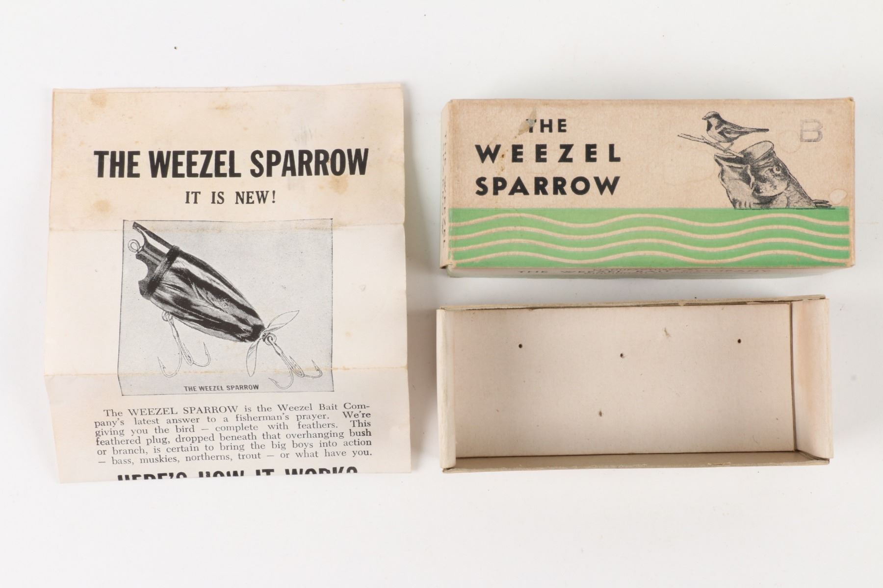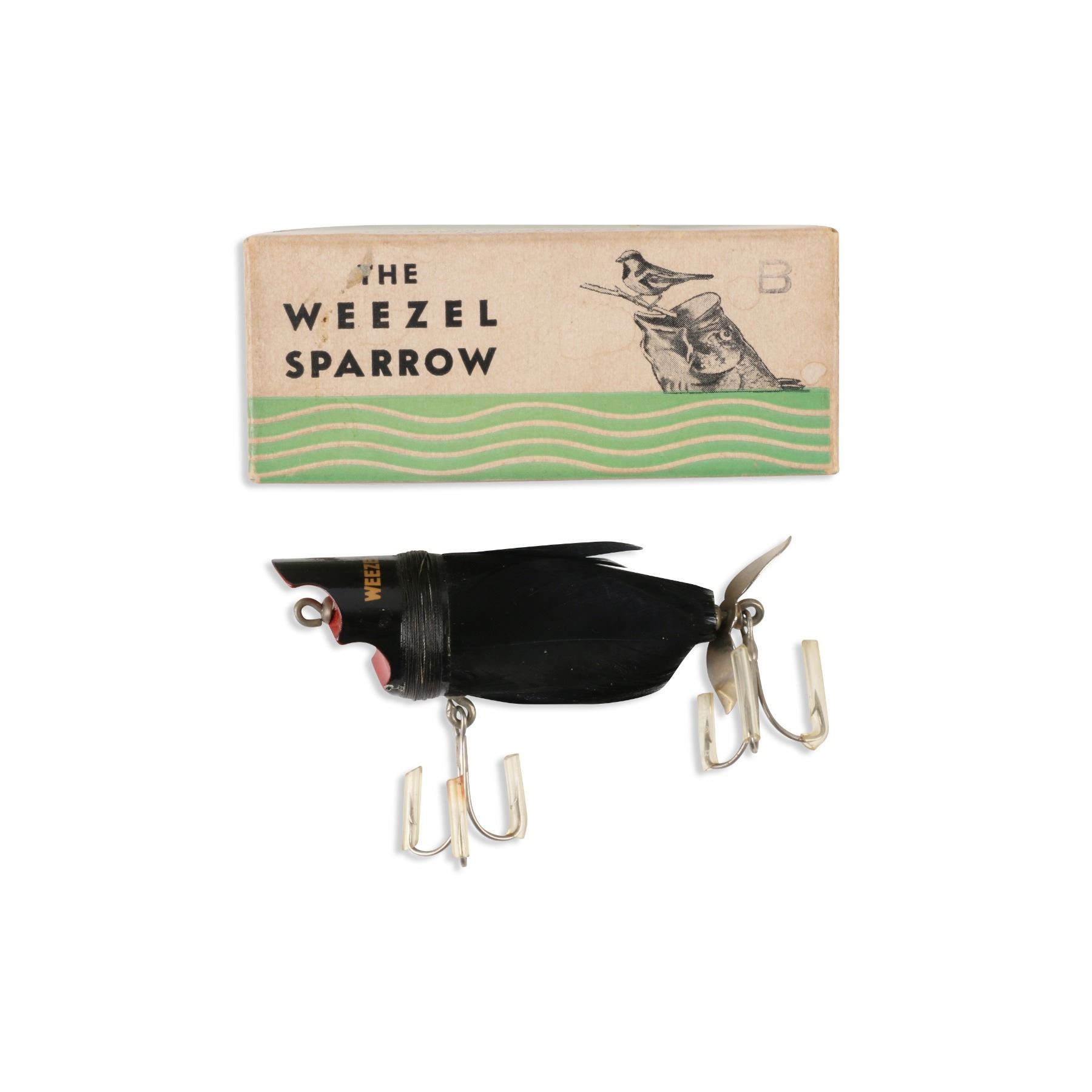 The Weezel Bait Company, United States. Material: Mixed. Quantity: 1. Grade: VG+. 4" box Est. $75-100.