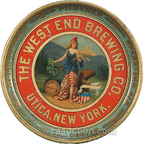 The West End Brewing Co. Tin Serving Tray, Utica, New York - 13" diam