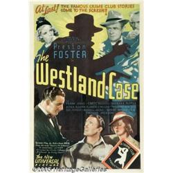 <B>The Westland Case (Universal, 1937)</B></I> One Sheet (27" X 41"). This was the first film in the "Crime Club" series produced by Universal. Preston Foster stars as Bill Crane, a detective brought in to solve a case where a girl is found murdered in a room where all the doors and windows were locked from the inside! (Note to detective: Maybe the killer locked the door first and just closed the door behind himself on the way out!- editor) The poster has had retouch done to the fold lines and small chips in the border. There were additional tears within the image that have been repaired with linen backing. Very Good on Linen.