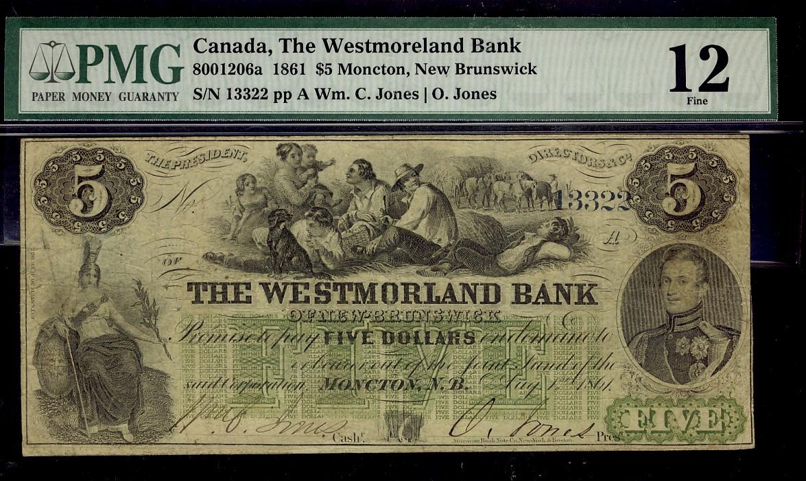 The Westmoreland Bank 1861 $5 #13322 CH-800-12-06a PMG F12