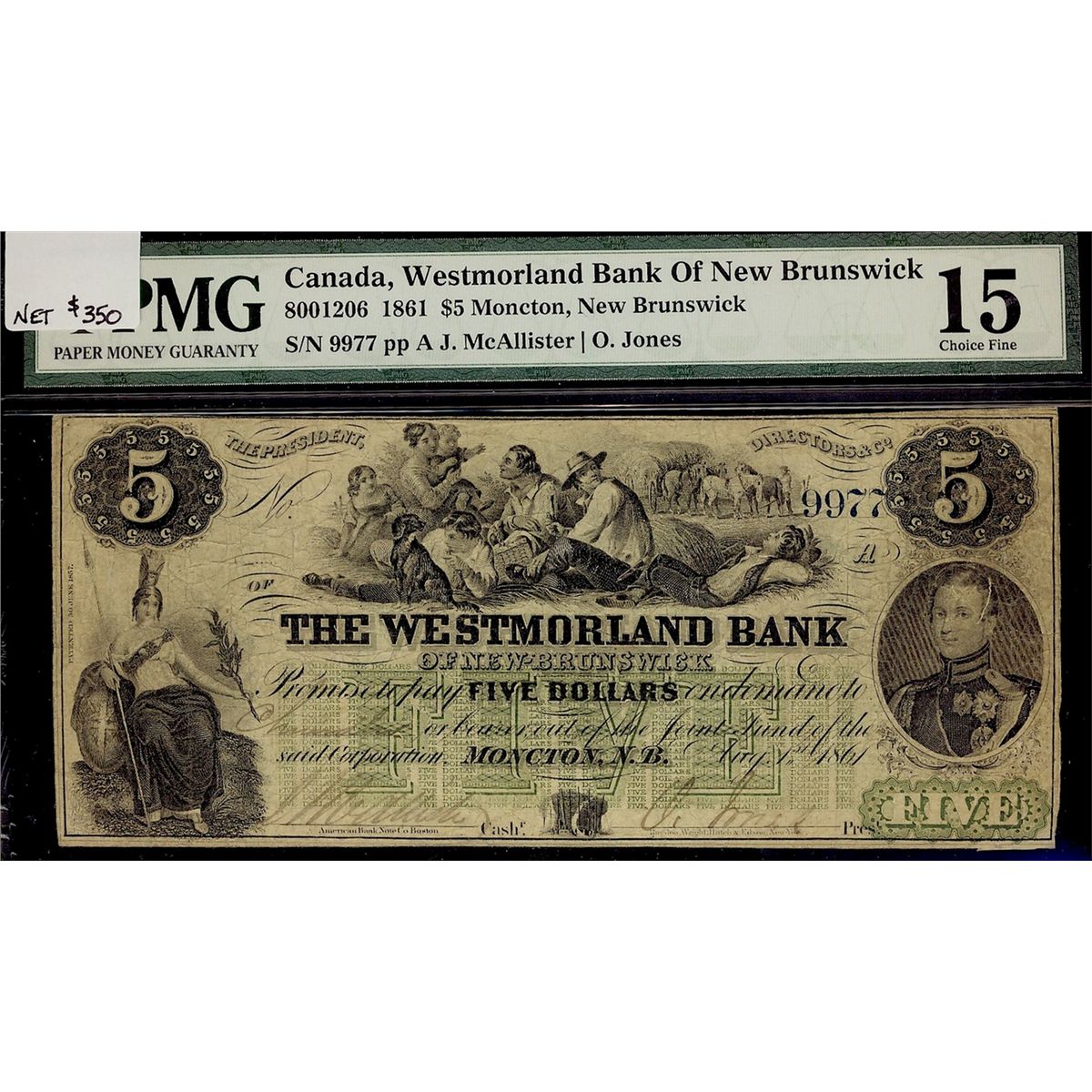 The Westmorland Bank 1861 $5 #9977 CH-800-12-06 PMG F15.