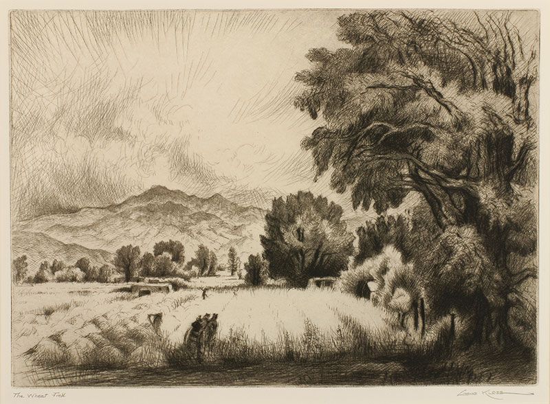 Gene Kloss, 1903 - 1996 NA | Signed: The Wheat Field, l/l [in margin] Gene Kloss, l/r [in margin]| Media: Etching, unframed | Dimensions: 8 by 11 inches