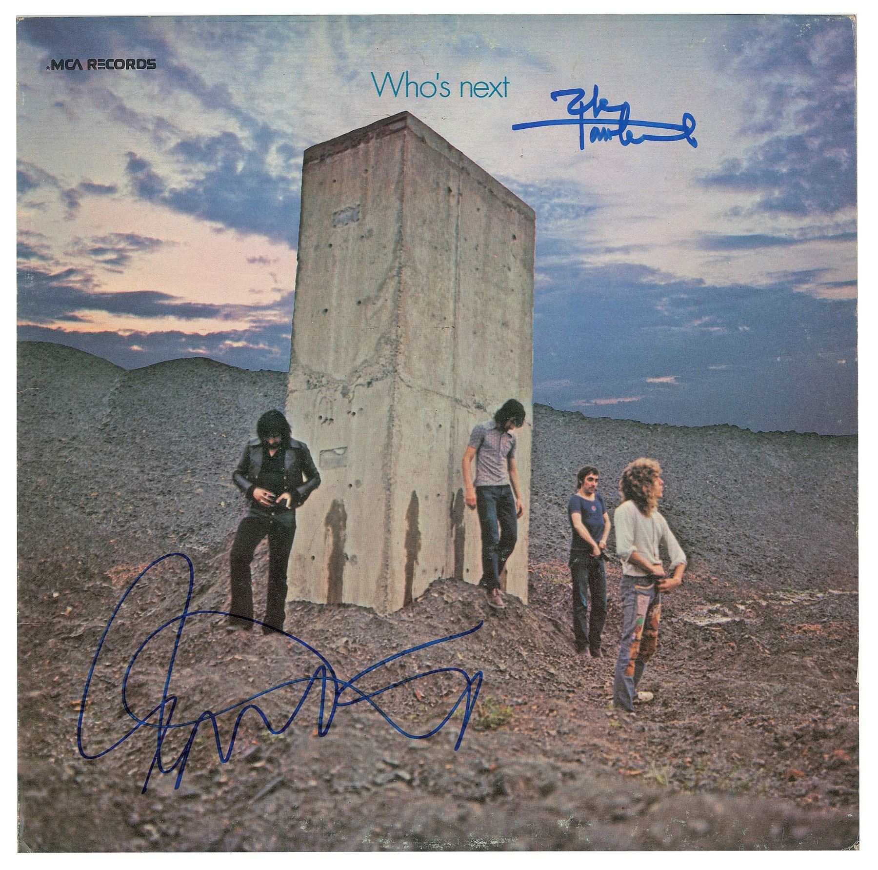 Who's Next album signed on the front cover in blue felt tip by Roger Daltrey and Pete Townshend. In fine condition. The record is included.