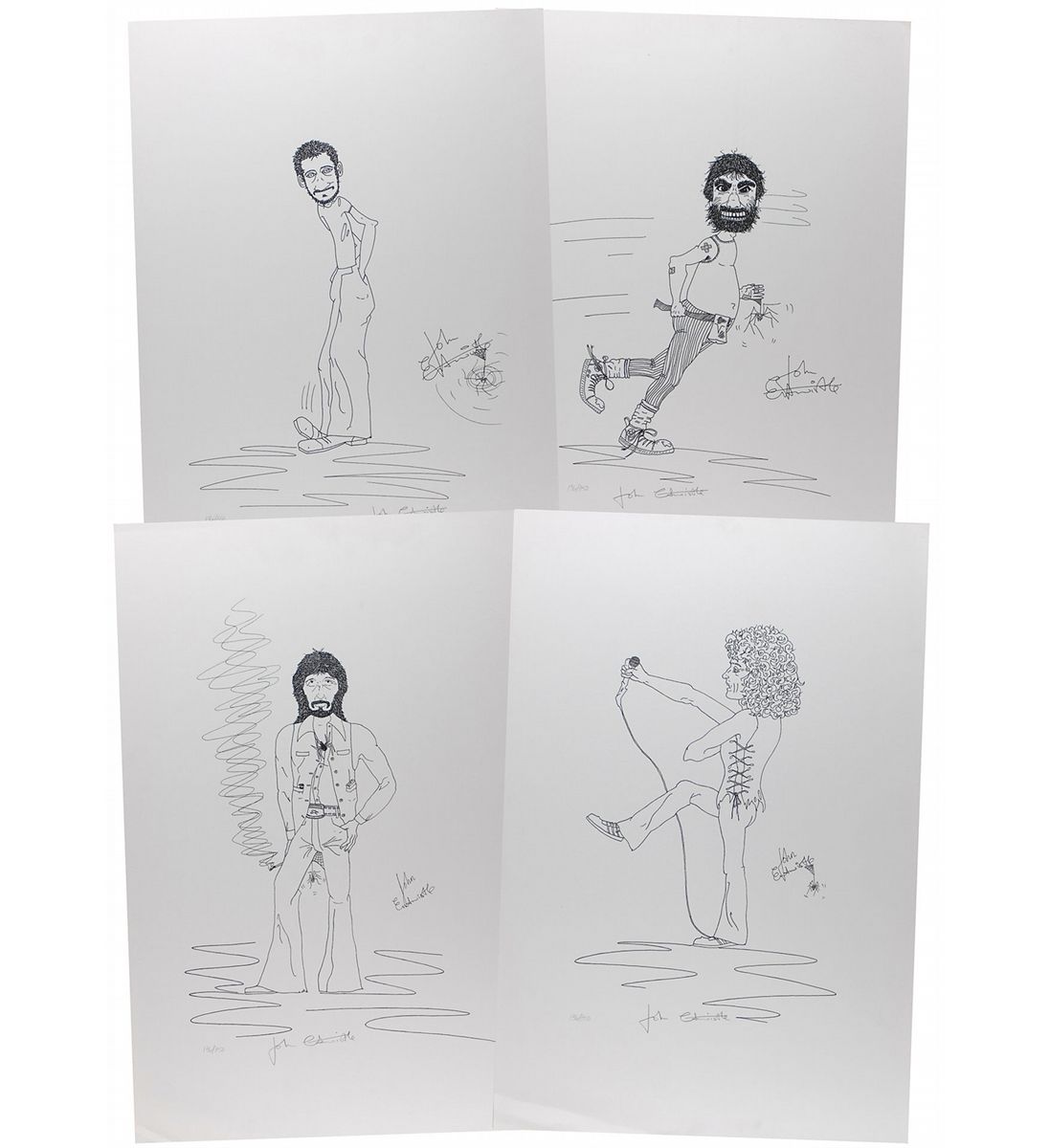Four limited edition lithographs, all 20 x 30, all four numbered 136/350, each depicting a caricature of the original members of the Who, each signed in pencil by Entwistle. In fine condition, with a few creases to lower left corners.