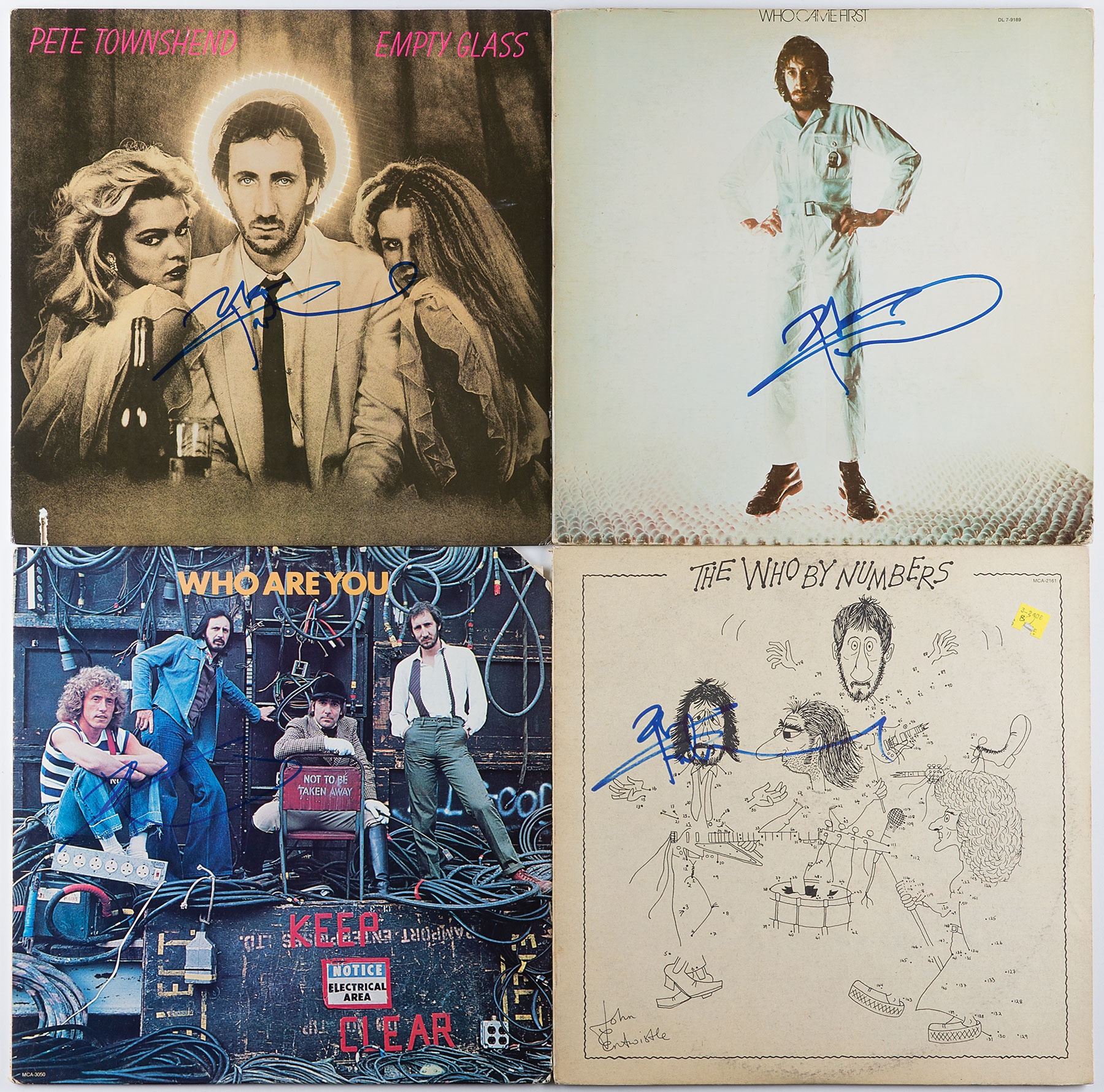Four albums signed on the front cover in blue felt tip by Pete Townshend: Empty Glass, The Who By Numbers, Who Are You, and Who Came First. In overall very good to fine condition. The records are included.