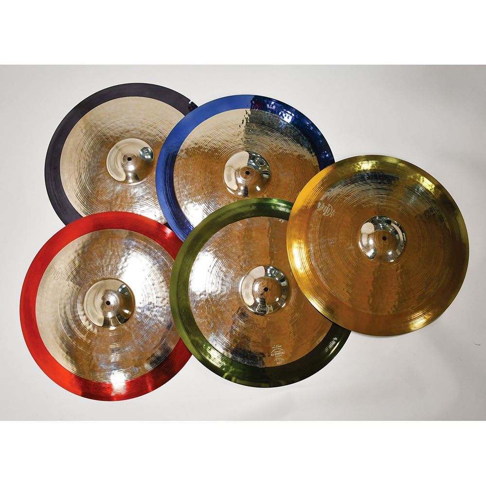 Stunning set of custom-made Olympic Zildjian cymbals used on stage by drummer Zak Starkey during The Who’s performance at the closing ceremony of the London 2012 Summer Olympics. The five cymbals, each 24˝ in diameter, were painted to represent the Olympic colors; therefore, the cymbals have a muted sound and do not sound like a traditional cymbal that is made to resonate. Although Starkey, the son of Beatles drummer Ringo Starr, did, in fact, use these cymbals on stage, the actual songs they performed at the ceremony were pre-recorded, so the sound heard at the show was not that of the cymbals, which were painted to be visual aids and not heard on stage. These gorgeous cymbals were made exclusively by Zildjian for this closing ceremony and, as such, they are one of a kind. In overall fine condition, with expected wear from use.