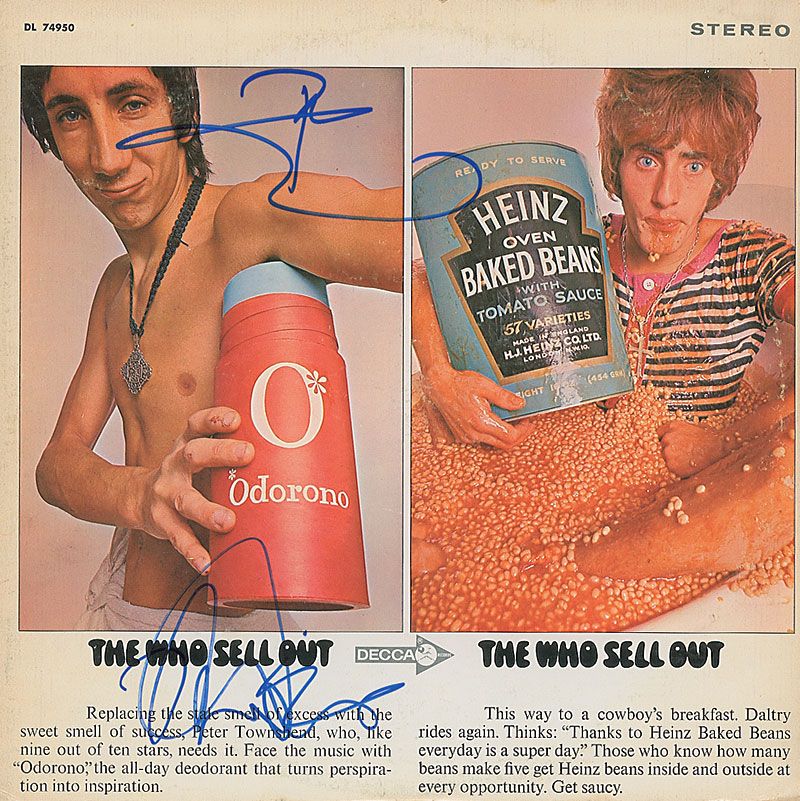 The Who Sell Out album signed in blue felt tip by Roger Daltrey and Pete Townshend. Light creases and toning, and wear and partial separation to spine, otherwise fine condition. The record is included.